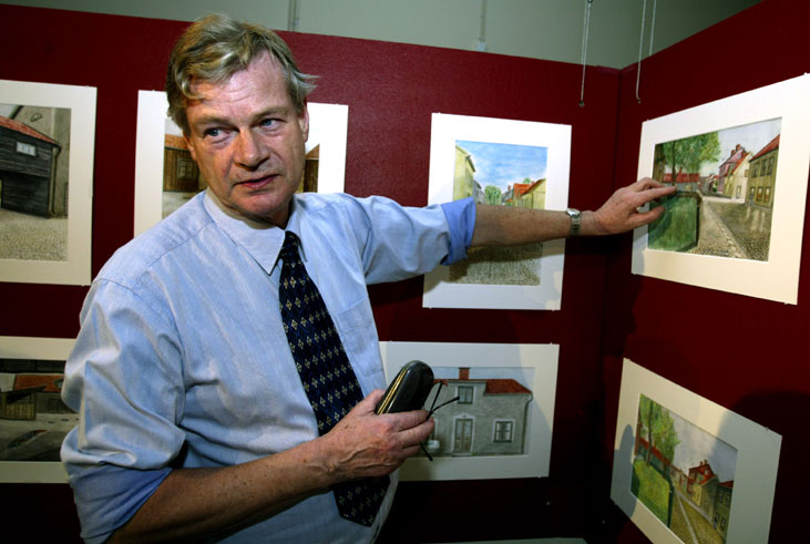 Sin första utställning hade han 2001 i samband med Skövdes 600-årsjubileum. Efter utställningen skänkte han alla de 117 målningarna till stadsmuseet.